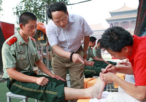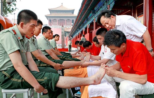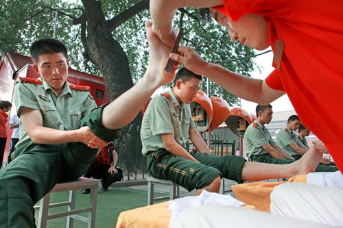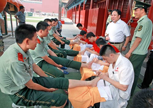 2010年7月25日,在八一建军节来临前夕,北京五指生足部保健中心的修脚技师、脊柱脊背老师,再次为天安门国旗护卫队战士送来一份“特殊礼物”——为战士们做专业的修脚、保健调理等服务。