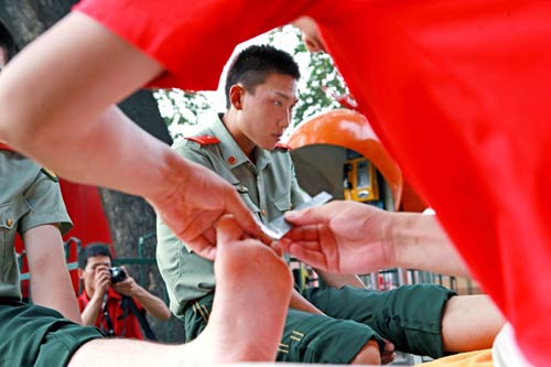 天安门国旗卫士做足部保健现场(王超 摄影)